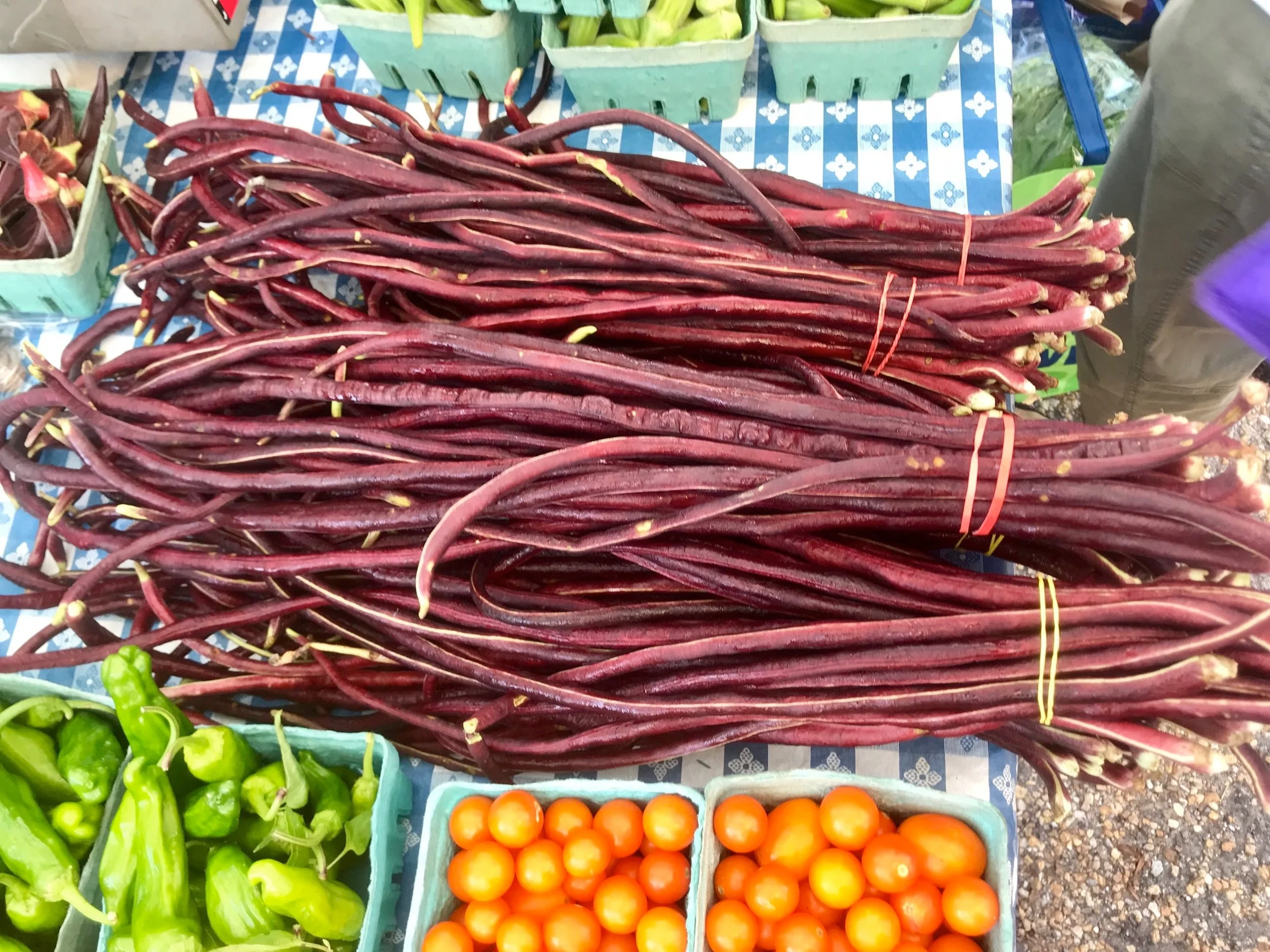 Grass fed lamb (French racks, loin chops, ground, shoulder chops), Salt St brown turkey fig bushes, red noodle beans, eggplant, escamillo peppers, red and green okra, red thumb fingerlings, crystal rose shallots, sunflowers.